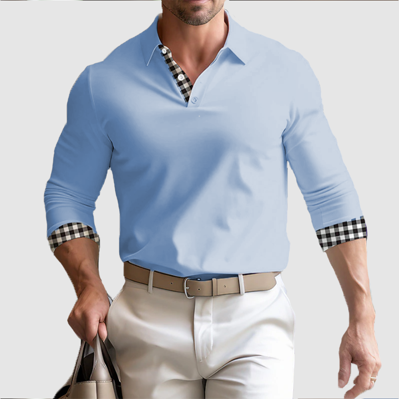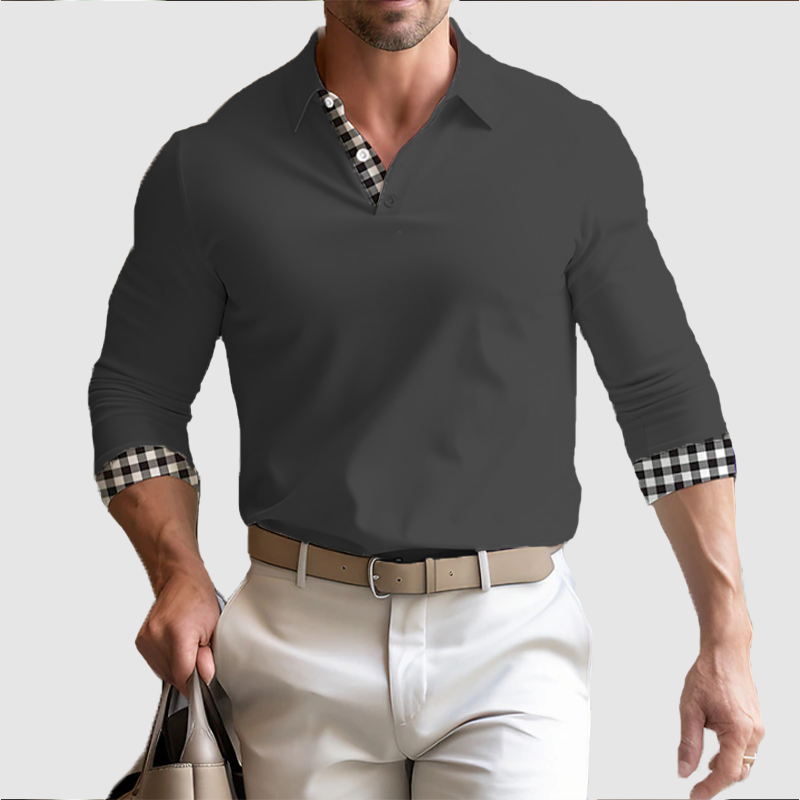 Men's fall long sleeve men's lapel loose plaid POLO top