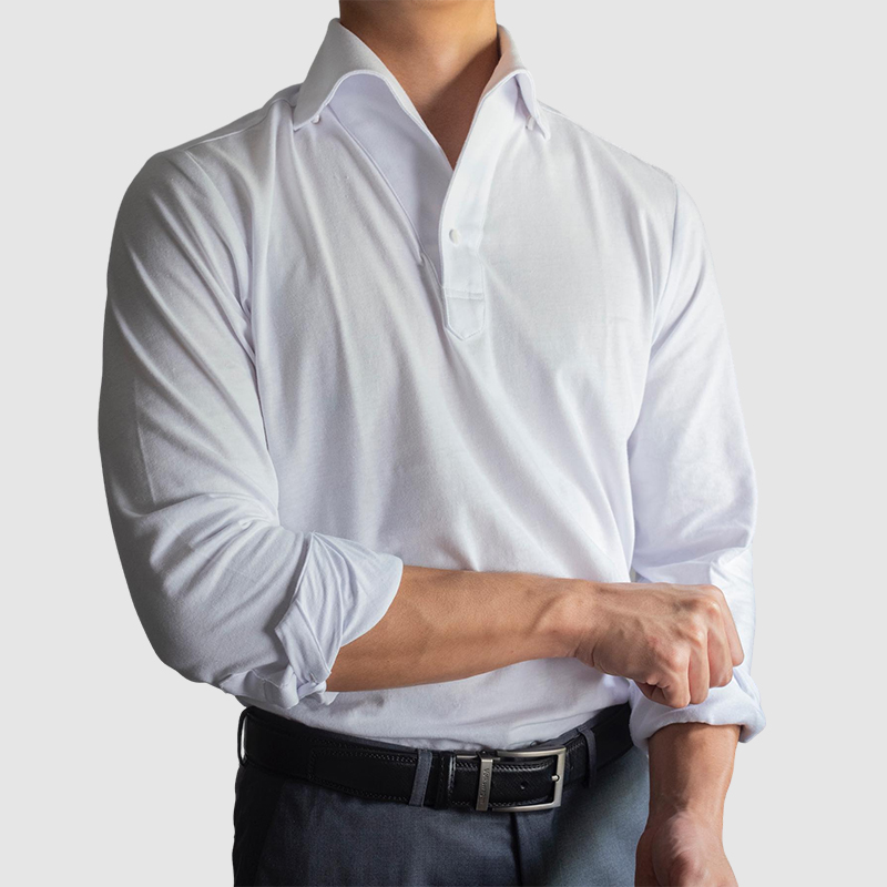 Gentleman's Simple Stand-up Collar Long sleeved Polo Shirt